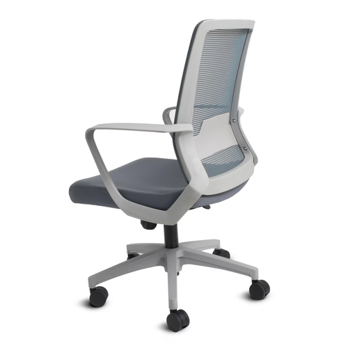 - Respaldo: Fabricado en polipropileno, tapizado en malla, color plúmbago, con soporte lumbar
